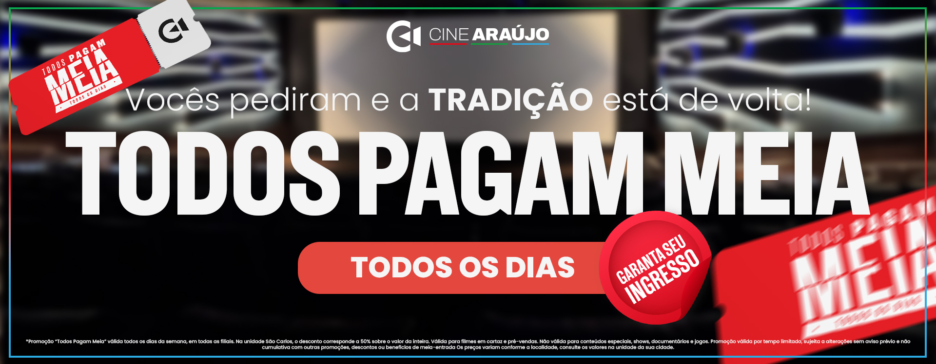 ❮ ❯ Em Exibição Pré-Venda 1 Ver horários Assistir trailer Crepúsculo (Relançamento) 12 Romance 122 min. Comprar ingresso Ver horários Assistir trailer Uma Segunda Chance 16 Drama, Romance 114 min. Comprar ingresso Ver horários Assistir trailer Cara de um, Focinho de Outro 6 Animação 105 min. Comprar ingresso Pré-Venda Ver horários Assistir trailer Super Mario Galaxy: O Filme 6 Animação, Aventura 98 min. Comprar ingresso Programação Completa » Promoções segunda-maluca quarta-maluca vale-cinema promocao-fake Produtos